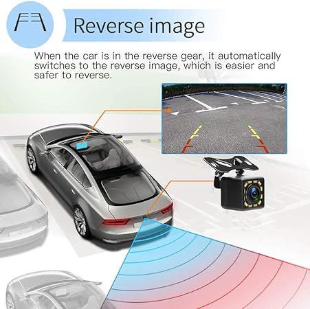 - 【Rear View Camera Input】: included a mini waterproof rear camera, with 12 IR light for great night vision, and 6M AV cable. The player will automatically switch to parking mode when you pull the reverse gear.