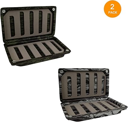 - 2Pack camo black+camo green as one group, 2Pack grey+green as two group, once payment you could get 2 pc box .AVENTIK NEW DESIGN :EVA foam pad, provides the ultimate grip for the flies, holding them securely, and keeping them dry. Super slim convenient to carry in any pocket. floating in the water.