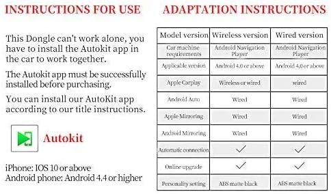 - [Wired Carplay & Android Auto] - Suport Carplay and Android Auto, For Android phone,it need download Android Auto app( Google search for suitable Android Auto app according to your phone ),For iPhone, it need turn on the carplay function. We provide life-time warranty for our products, Please message the paper comes with the package and activate your Life-time warranty