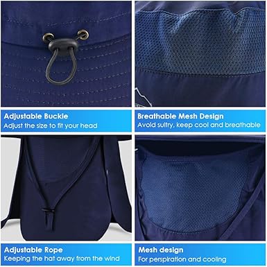 - COMFORABLE & BREATHABLE:Windproof design with adjustable chin cord holds the hat in place on windy days. Built in sweatband removes sweat from eyes and face. Mesh vent keeps your head cool and comfortable