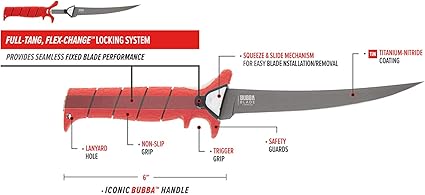 - RELIABLE: Patented Bubba Blade Non-Slip Grip handle ensure reliable use in your hand even when wet; Features safety guards for protection from the blade and spines of fish