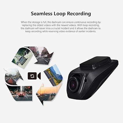 - 【Seamless Loop Recording】 When the storage is full, the dashcam can ensure continuous recording by replacing the oldest videos with the newest videos. With loop recording, the dashcam will never miss a crucial incident and it allows the dashcam to keep recording while reserving video evidence of earlier incidents.