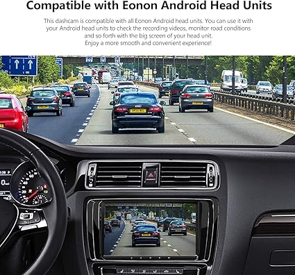 - 【Compatible with Eonon Android Head Units】 This dashcam is compatible with all Eonon Android head units. You can use it with your Android head units to check the recording videos, monitor road conditions and so forth with the big screen of your head unit. Enjoy a more smooth and convenient experience!