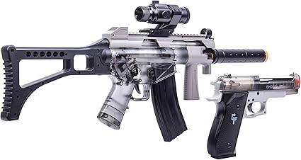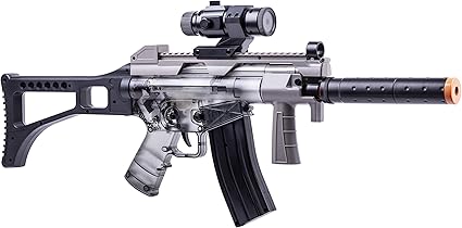 "It works like a champ."The rifle is fairly accurate and the pistol does its job. This is a present for our grandson's birthday. Bought this gun so me and my friend could have a little airsoft fight. And he really can't hurt anyone with it. So I painted the tips black to match the gun and might I say they look amazing. We've been using them now for a couple years with no issues. Cool airsoft guns great for starter airsofters.