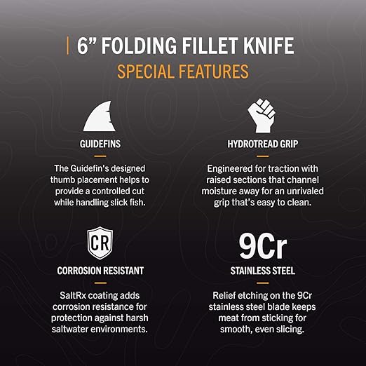 - Slim design folds up for compact and packable storage in tackle box or pocket