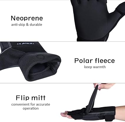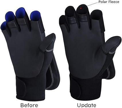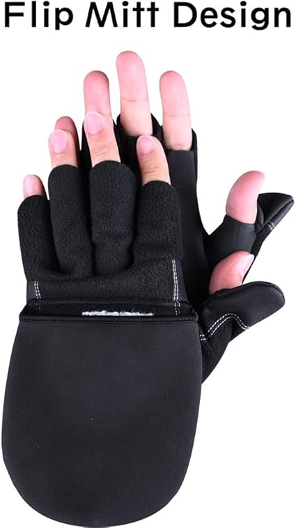 - ADJUSTABLE WRIST VELCRO STRAP// It fit for any size wrist and fix your wrists,Don't fall off ,Snug fit elastic design keep the gloves tight to your hands and avoid blowing cold air in,Convertible gloves converts convenient from warm mittens to fingerless gloves, freeing your fingers make it easily tie knots,throw the rod, feel your line.And ensures touch screen dexterity without compromising performance and dexterity.