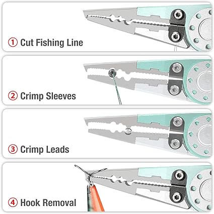 - Versatile Pliers- The multi-functional hook removers are designed for removing hooks, cutting line, changing split rings. You can shred through the toughest braided fishing line with ease, and enjoy smooth operation thanks to a keep open spring in the pivot.