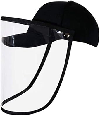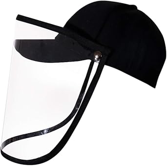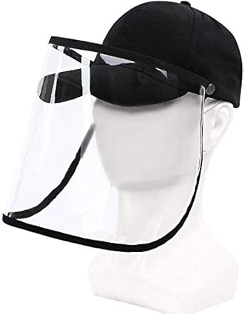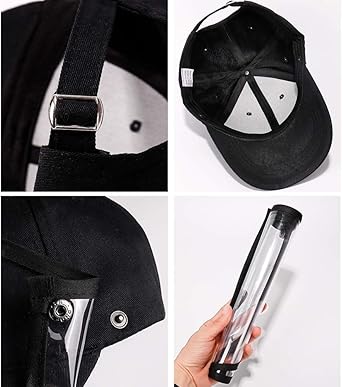 - Features: The face shield with detachable clear plastic, fashionable black baseball hat that can also be worn as an everyday accessory