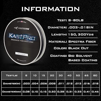 - GREAT CASTABILITY – KastPro Spectra braid’s round, smooth finish delivers long, easy casts for both freshwater and saltwater fishing. It leads the industry with the thinnest possible diameters per rated breaking strength in a 4-strand braided fishing line. Low stretch properties means faster hook sets and greater sensitivity.