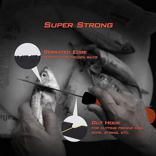 - The Right Knife For The Job - The 5” Bait Knife is stiff and strong, it has a serrated top edge that makes cutting frozen bait quick and easy. The razor-sharp leading edge allows the fisherman to easily prepare both chunk and cut plug style baits. The 6”, 7” & 9” Fillet Knives are not only sharp and but also have the perfect flexibility so the knife will follow natural contours for perfect fillets. The 9” Strong Fillet Knife is a powerhouse for steaking big game fish like salmon, tuna and more.