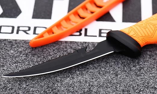 - Razor Sharp Stainless Blades – All new KastKing knives utilize premium, razor sharp G4116 German Stainless-Steel blades with a beautiful black finish. KastKing knives will maintain their edge longer in both fresh and saltwater applications and make the job of cutting baits, filleting fish of all sizes, steaking large game fish and trim or remove meat and fish from the bone easier than ever before.