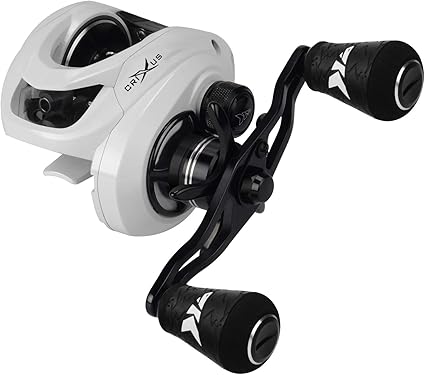 - Tournament Proven Components – Crixus casting reels feature heavy duty brass main and pinion gears that deliver long life, higher speeds and low noise. The Crixus baitcast reel comes in a convenient all-purpose, 6.5:1 gear ratio. It has a CNC machined aluminum U-Shaped spool for longer casts and higher fishing line capacity. The lightweight aluminum handle has comfortable, slip resistant Super Polymer grips, unheard of at this price, for all day fishing comfort!