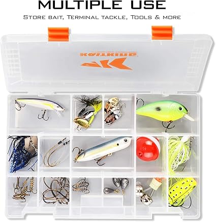- Robust construction – Built with a thick rugged frame, the KastKing fishing tackle box provides anglers with a durable storage and organizing solution for hard baits, plastics, terminal tackle, and tools. Our sturdy molded latches ensure contents stay secure.