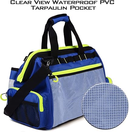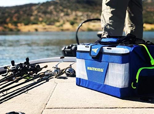 - TOUGH and WATER RESISTANT – KastKing TB71 tackle bags are made from tough 600D rip-stop PE material. Durable composite clips provide exceptional long-term performance and reliability. The inner PVC layer provides protection to ensure your fishing tackle is protected from the elements. A durable 600D PE PVC coated bottom repels moisture and the tacky rubber feet grip any surface to ensure the bag doesn’t slide.