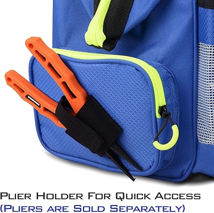 - FUNCTIONAL DESIGN - Designed for function, the plier holder ensures easy access to fishing pliers without fumbling through your bag. Use the integrated molle straps to tether pliers, clip on a Bluetooth speaker, or attach other gear. The clear PVC zippered pocket is ideal for storing bags of bait for quick identification and access. Our hi-vis chartreuse zippers and loop pulls are easy to locate in low light and illuminate bright yellow when using a UV light.