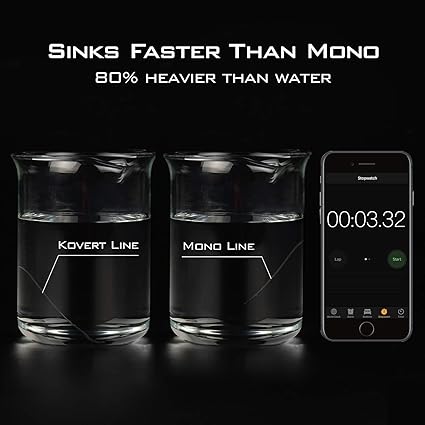 - FAST SINKING/HIGHLY SENSITIVE – Kovert 100% Fluorocarbon line is 80% heavier than water so it sinks much faster than traditional mono fishing lines. This can be a distinct advantage in many fishing situations. Its highly sensitive nature also improves strike detection and improves the feel of your fishing line while increasing your hook-up ratio.