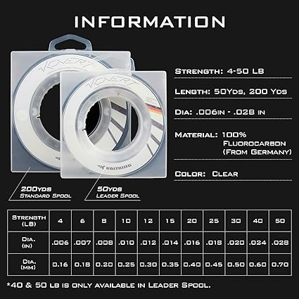 - LINE DISPENSER PACKAGE –KastKing Kovert 100% Fluorocarbon fishing line and fluoro leaders are perfectly spooled in amazing 50Yds/200Yds packages with a line dispenser function. It keeps your excess fishing line in the package without tangling or getting loose. The 50-yard spools are perfect small, easy to store, leader spools. Use the larger 200-yard spools to fill reels or when you use a lot of fluorocarbon line as fluoro leader material.