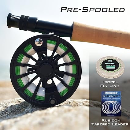 - Aluminum Fly Reel – The combo includes a high quality, lightweight aluminum, large arbor fly reel with an extremely smooth disc drag. The reel is pre-spooled with backing, weight forward floating fly line and the tapered fly leader is already attached. The reel is size matched for perfect balance with each line weight rod and is anodized with a rich black finish.