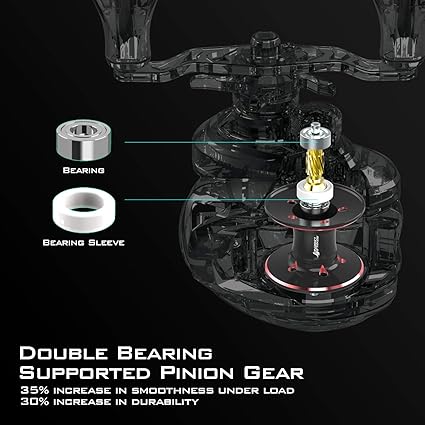 - BUILT FOR PERFORMANCE AND ENDURANCE 5 + 1 Double Shielded Stainless Steel Bearings, Hamai precision cut brass 37 mm main gear, brass pinion gear, brass main shaft, nickel-plated brass worm shaft, stainless steel hardware, a sweet spot 7.2:1 gear ratio with 29.8” IPT for quick line pick up, smooth ceramic line guide. Line Capacity Mono (Lbs/Yds):10/130,12/110,14/9, Braid: (Lbs/Yds): 40/130, 50/110, 65/90
