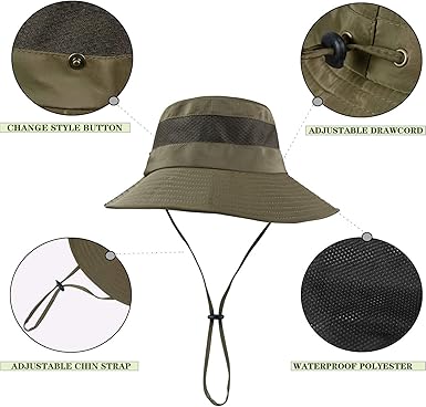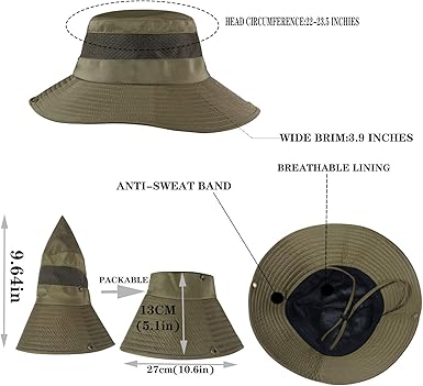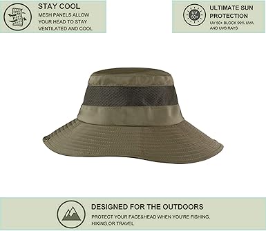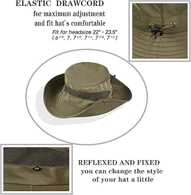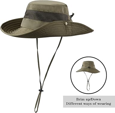 - DESIGNED FOR THE OUTDOORS: Wide brim will keep your head and face away from the sun and heat,Whether you're fishing, going for an adventure walk or spending an afternoon gardening, our headwear will keep your head and face protected from the sun and heat. The adjustable drawstring can hold the hat on windy days,with 4 large meshed eyelets for ventilation &an internal moisture wicking sweatband.keep your head cool and ventilated.One size will fit most