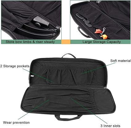 - Large Capacity: 3 inner slots for bow limbs and riser, 2 main inner pocket and 1 front outer pocket, help to sotrage more archery accesories. The molle webbing design helps to hang some small item what you need.