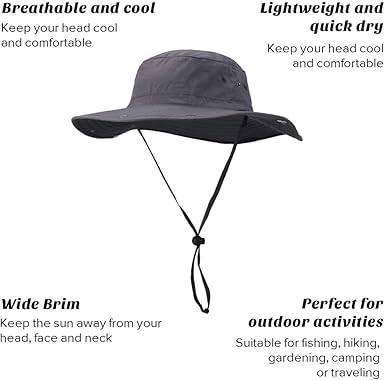 - ☀ADJUSTABLE DRAWSTRING CLOSURE: Adjustable chin cord keeps this hat secure for windy days and a good fit for your use. This sun hat is lightweight and quick-dry, with a portable and lightweight design, you can easily fold this fishing hat into your carry bag or backpack.