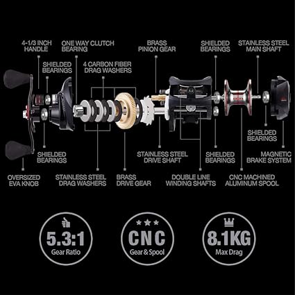 - POWERFUL- Advanced, 4-washer, gives the low profile baitcasting reel physically powerful 18LB carbon fiber drag to handle the big fish you are after
