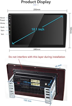 - 【Vehicle Fit】 Two metal brackets can be fixed on the back, installation size: 180(W)*75(H)mm. The front panel size: 250(W)*145(H)mm. please make sure your dashboard has enough space to put 10.1” big screen. We offer 30-day Money-Back, 12-month Replacement, life-time Technical Support.Technology Support: [email protected]