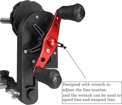 - 4. ADJUSTABLE LINE TENSION: You can control line spooling tension very well, and achieve a nice smooth and even spread on line on your reel spool. It is easy to control the string tension through out the winding process. Very easy to go from heavier to lighter as you wind, you can adjust the line tension to exactly where you want and load line with ease.
