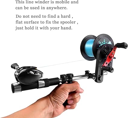 - 3. CAN BE USED IN ANYWHERE: It's a handheld line spooler could be used in anywhere, light weight, simple, and easy to carry, it is mobile and can be used in the field, no need to find a hard, flat surface to fix the spooler, just hold it in your hand. A very quick, easy and effective way to wind line on your reels. The line spooler 's build quality is fantastic, the tension WON'T be tricky, the line is tight enough on the reel, the reels cast smooth.