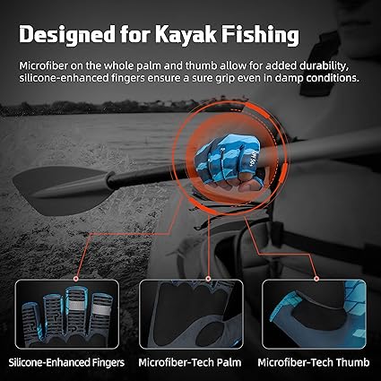 - Microfiber-Tech Safeguard: Constructed with microfiber on the whole palm and all fingers for enhanced dexterity, and double-layer microfiber on palm and thumb when needed for added durability, protects your hands from cuts, abrasions, and hand fatigue, especially ideal for kayak fishing