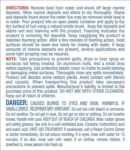 - Removes deposits on boat bottoms, scum line and rust stains quickly and easily