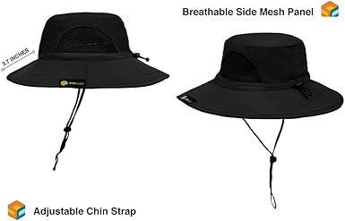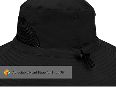 - FUNCTIONAL AND VERSATILE The sun hat has an adjustable chin strap to keep hat secure on windy days and an adjustable head strap to tighten for snug fit in the back.