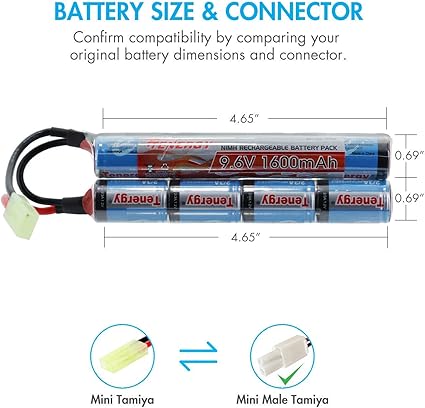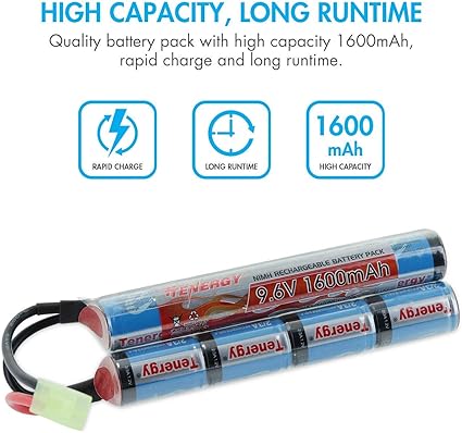 - PEAK PERFORMANCE PACK - Tenergy’s high performance bb guns batteries provide more playtime; our 9.6V 1600mAh NiMH rechargeable battery made of 8 cell 2/3A NiMH batteries.