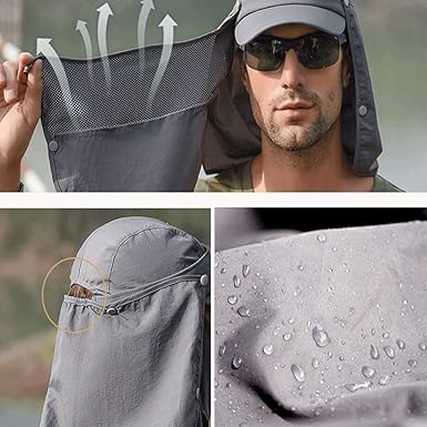 - UPF 50+ UV Protection :High-tech fabrics were used, UPF 50+ sun protection to keep delicate skin on the neck ears and face safe from harmful rays, The whole surrounded by a large shawl, free removal, sunscreen and breathable. in addition to a removable neck flap and breathable face protector, It protects skin from the elements and the mask can protect face from dust. Great value hat blocking out more than 98% of the sun harmful UV rays, Quick Dry Baseball Cap Face Neck Cover Flap