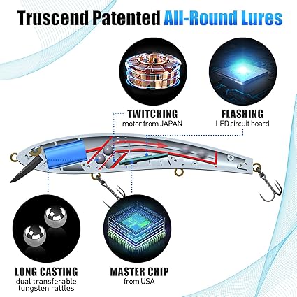 - 【Hover design】stopping at any appointed water layers you want.Integrated dual-tungsten steel ball central gravity transfer system for optimized casting range.Suitable for both Freshwater and Saltwater,day and night.