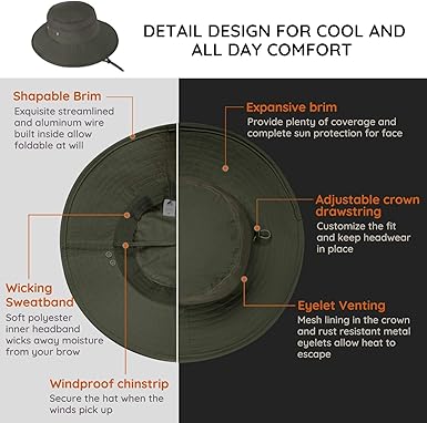 - WICKING & BREATHABLE & PACKABLE: Internal polyester sweatband could draw perspiration away from your brow quickly and strategically placed hole vents and mesh fabric in the crown keep you cool and breathable. Ultra lightweight and packable, only weigh 190g, the hat can be rolled into a tube shape for easy storage and carrying. Best partner for various outdoor activities, like fishing, climbing, hiking, gardening, beekeeping.