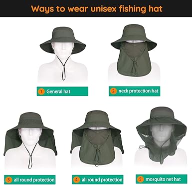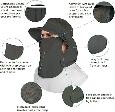 - DETACHABLE DESIGN & MULTIPLE WAYS OF WEARING: The detachable face mask, neck cover and mosquito head net ensure its multiple wearing ways - enable to wear it as general hat, windproof hat, neck protection hat, all round protection hat or anti-insects hat. Choose the most suitable type depend upon your protection needs.