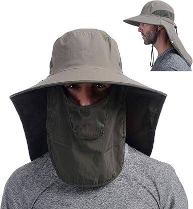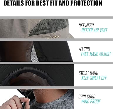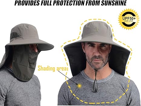 - 【 UPF 50+ UV Protection 】High-tech fabrics were used, UPF 50+ sun protection to keep delicate skin on the neck ears and face safe from harmful rays, The whole surrounded by a large shawl, free removal, sunscreen and breathable. In addition to a removable neck flap and breathable face protector, it protects skin from the sunshine and the mask can protect face from dust. Great value hat blocking out more than 98% of the sun harmful UV rays