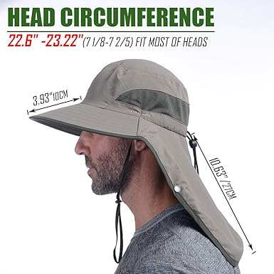 - 【 Product information 】Material: 100% Nylon fabric, Size: One Size Adjustable 22.6" -23.22"(7 1/8-7 2/5)/ (56.8-60 cm), Brim 3.93”/10cm, Net Weight: About 5.25 Ounces /149g( Very Light), Feel: Soft and Comfortable, Ultraviolet Protection Factor(UPF): >50,Other Features: Windproof, Waterproof, Quick Drying, Breathable, Removable