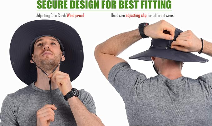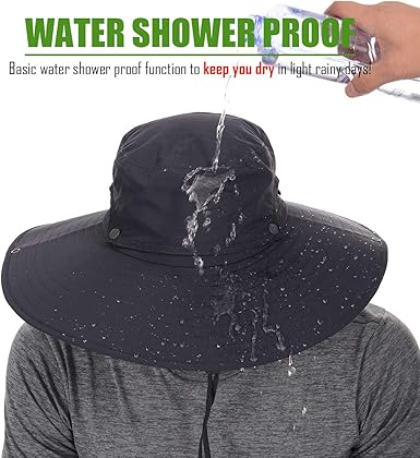 - 【 Windproof & Water Resistant 】The back of the hat is with durable adjusting buckle, Windproof design with adjustable chin strap ensures the hat stays put even in windy conditions. Water resistant material allows it to be used even in light rainy days. Provide good shading for regular daily use and outdoor activities especially like bush walking, fishing, hunting, golf, tennis, camping, outdoor research,baseball,cycling.
