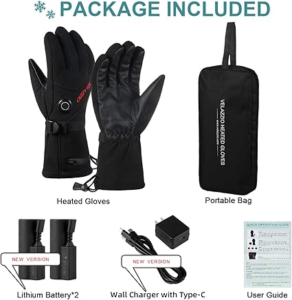 - WHAT YOU GET - 1 pair of electric heating gloves, 2 safety-certified batteries, 1 charging adapter, 1 carrying bag and friendly customer support. If the gloves do not meet your expectation or whenever you have any concerns, please do not hesitate to contact us - we are always here to help until problem completely solved.