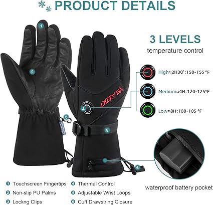 - WATERPROOF & BREATHABLE - Durable water repellent (DWR) out shell, moisture-wicking fleece lining and Fan-Tex membrane, which keeps water out while allows sweat vapor to escape, ensure dry experience at all conditions. It is simply a pair of high quality snow gloves even without the heating system.