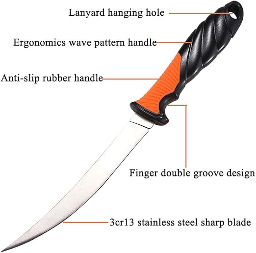 - 【Sharp Stainless Blades】Our fillet knife use premium 3cr13 Stainless Steel blades which is Sharp, Durable, Rust and Corrosion Resistant. The knives will maintain their edge longer in both fresh and saltwater applications and make the job of cutting baits, filleting fish or remove meat and fish from the bone. Whether you are in the kitchen or out on a boat, it's a perfect knife for precision cutting and slicing.