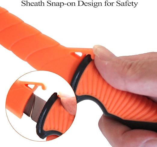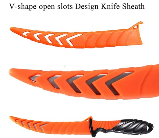 - 【Durable Knife Sheath】Each filet knife includes a lightweight and durable sheath to protect the blade and your safety. The Sheath unique lock design will lock the handle in for safety but removes easily when needed. The V-shape open slots in the sheath are design to allow water to drain easily so that your knives stay dry and sharp.