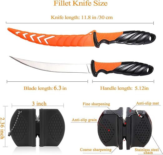 - 【Perfect Gift for Fishermen】The 6.3inch fishing knives are both perfect in length and shape so that you’ll always have this fillet knife for the job. Excellent for breaking down small to medium freshwater and saltwater fish. Include practical Knife Sharpener and Exquisite Gift Box, perfect gift for fishermen,father, friends who loves fishing.We have total confidence in the quality of all ZHENDUO OUTDOOR fishing tools. Choose us, you won't be disappointed!